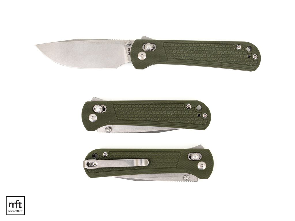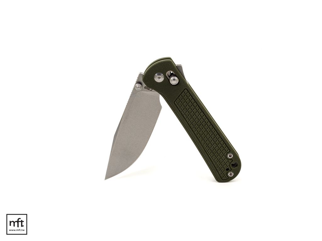 MFT引進的款式為綠色G10握柄,石洗刃面版本。