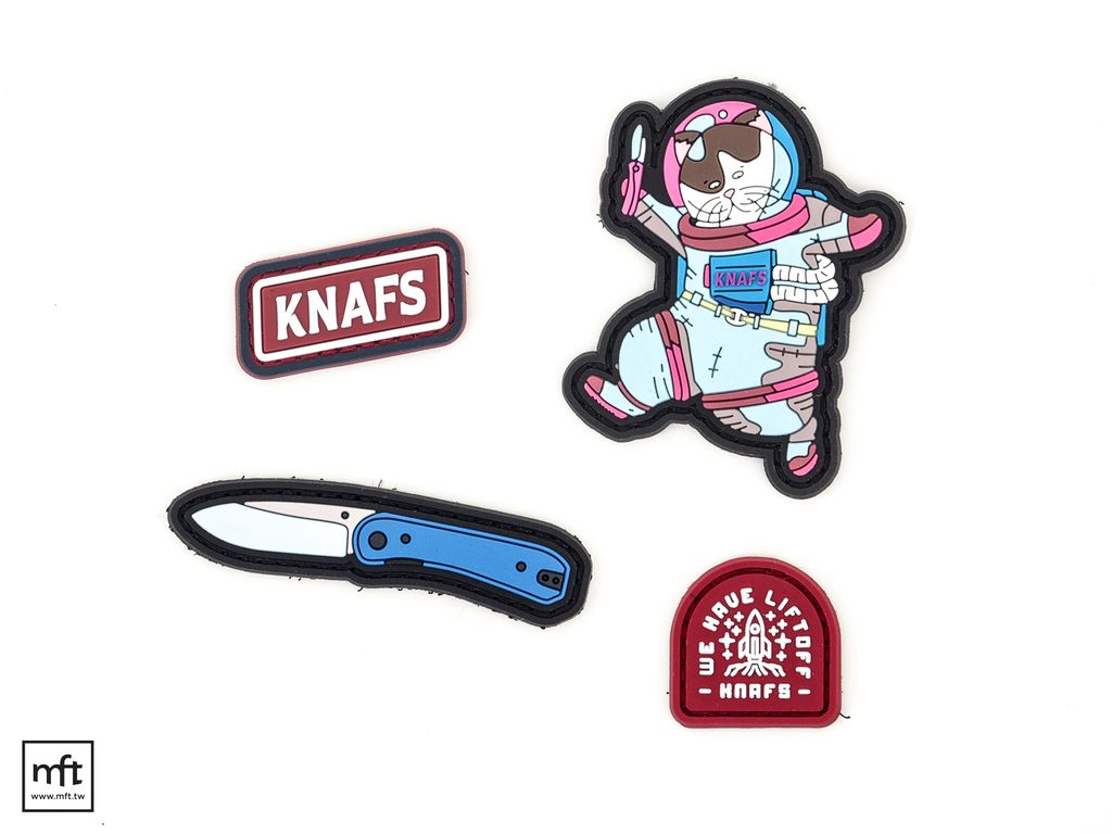 這套KNAFS的品牌徽章,軟PVC材質,色彩豐富,製作精緻,背面為魔鬼氈的鉤狀結構,可以用來貼在包包或者是衣服上的魔鬼氈區域,當做個人風格的展現或是辨識用途。