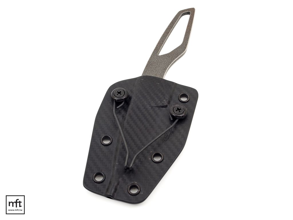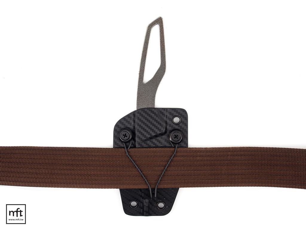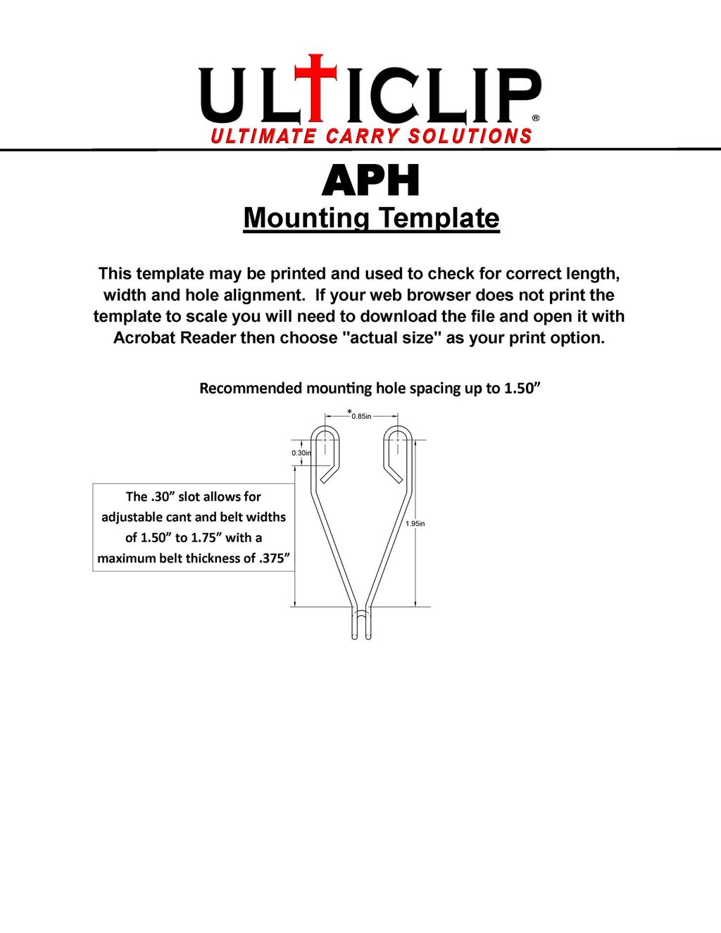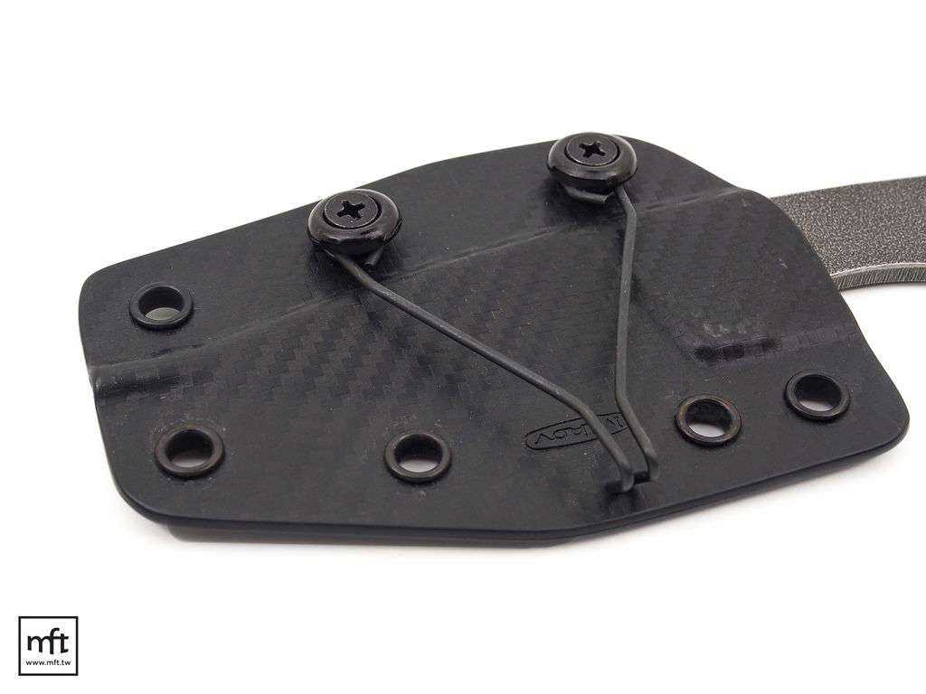 APH Clip的固定孔位直徑為7.6mm,因此可以更自由的調整安裝角度,用於刀鞘上,可以直式或是橫式(Horizontal/Scout Carry)配戴,另外由於它是以夾緊的方式夾扣住腰帶,因此寬度1.5 吋(約 38 mm)至 1.75 吋(約 44-45 mm)範圍內的腰帶都適用。