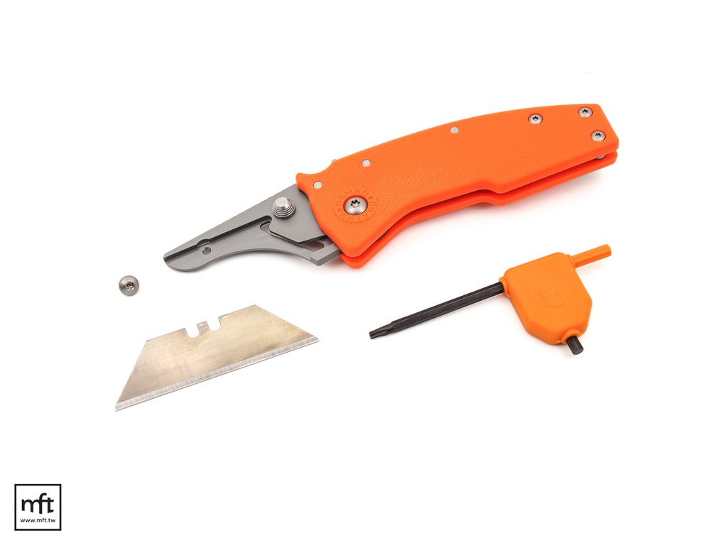 握柄的部份是採用GRN材質(Glass-reinforced nylon玻璃纖維強化尼龍),更換刀片需要解開一顆T8螺絲,而原廠也提供一支T8螺絲起子在包裝內以方便更換刀片。