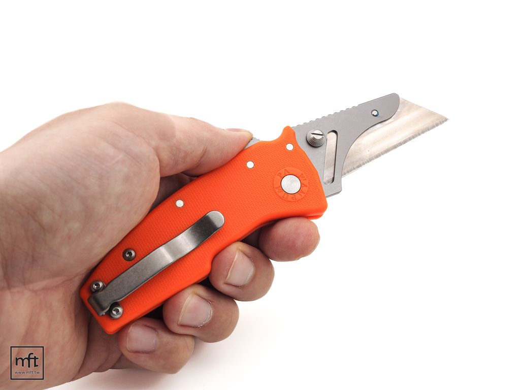 本款Razor Shark GRN的尺寸等同於Nano Shark,鎖定機制也都相同,差別在於刀片的部分是可更換式,採用一般工業標準規格的Utility Blade刀片,取得與更換容易,可隨時保持銳利。