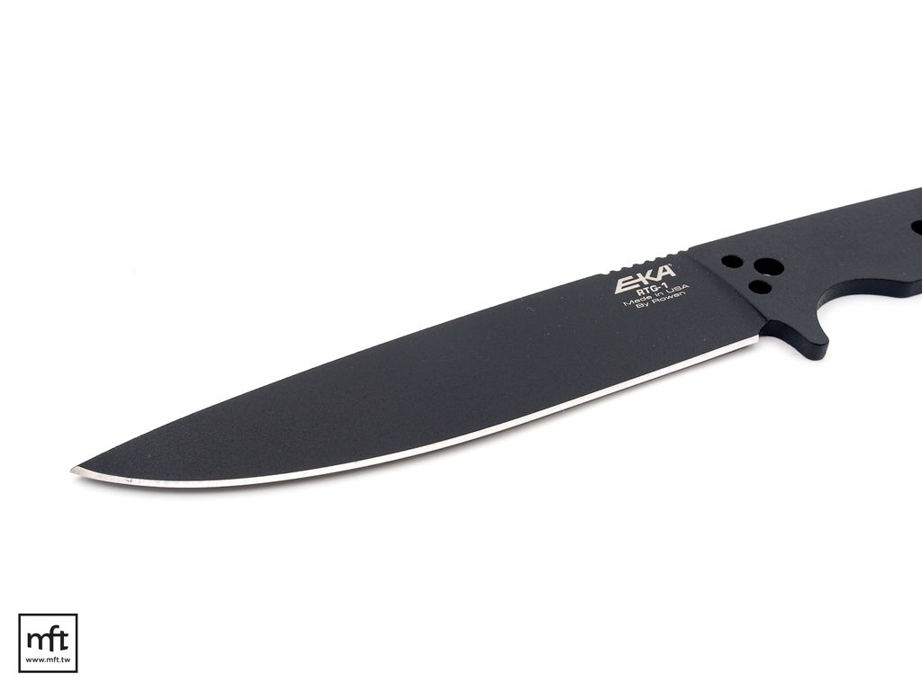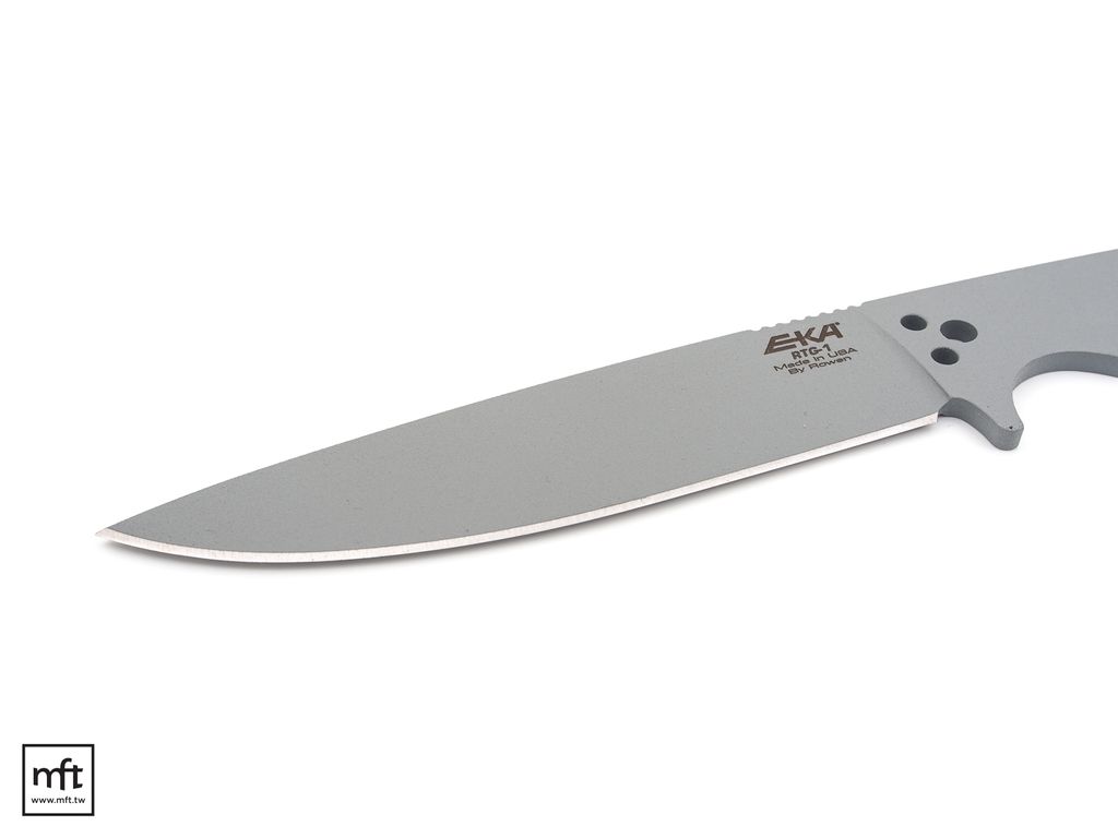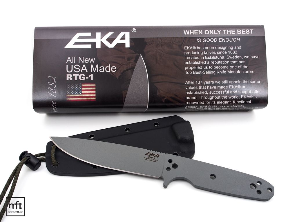 EKA在2019年發表了一支和傳統EKA刀具風格迥異的刀:RTG-1直刀,且令人意外的,這款刀並非在瑞典而是在美國製造,1095碳鋼材質,刀刃上有塗層(表面略微粗糙觸感),做工扎實,附帶Kydex刀鞘與背夾套件。整體風格讓人不禁聯想到E字開頭的美國廠牌,沒錯,這款RTG-1就是由ESEE Knives的製造工廠Rowen Manufacturing代工生產。
