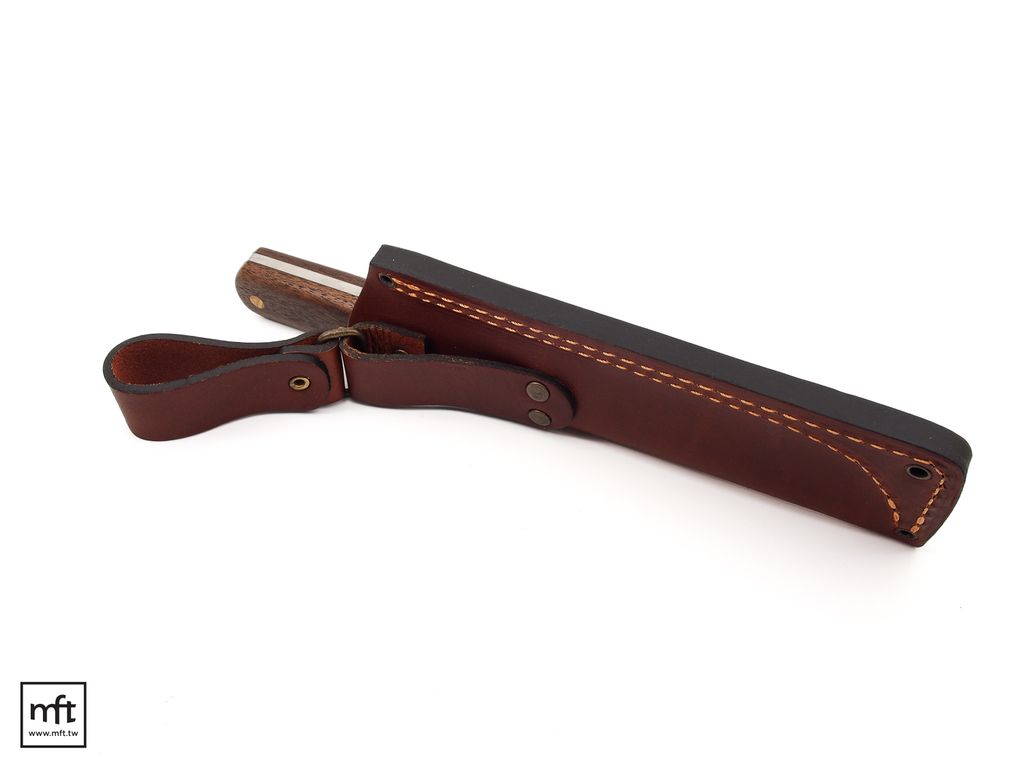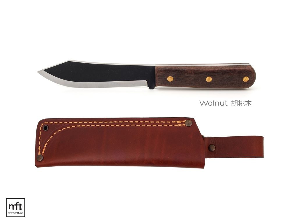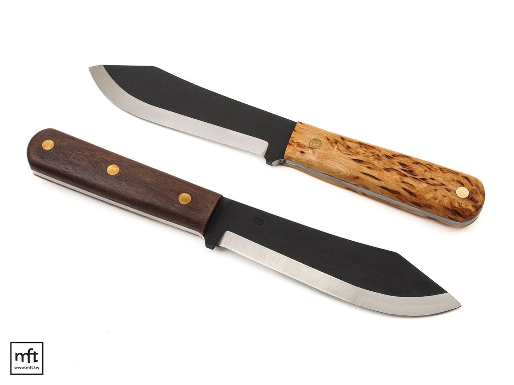NKD Hudson 125是一款向Hudson Bay Camp Knife致敬並融合北歐特色的直刀,刃長12.5公分,比起Hudson Bay Camp Knife要輕薄短小許多,保留了Clip Point刃型,鋼材採用1095碳鋼,Scandi刃角,握柄為簡單樸實的直桶造型,以黃銅Pin釘固定,隨附一個皮刀鞘,刀鞘上有兩個穿過皮帶的位置:一個是直接連接皮刀鞘的固定孔位,穿過這個孔位,刀鞘可以穩定的固定在皮帶上。另一個是以黃銅五金連結的懸空孔位,穿過這個孔位,刀鞘可以保持懸空,在需要高度活動的狀態下,刀鞘比較不會卡卡的,妨礙活動。