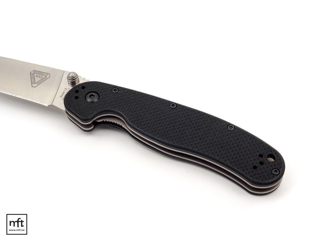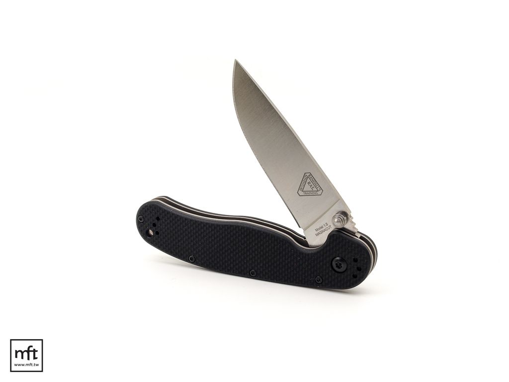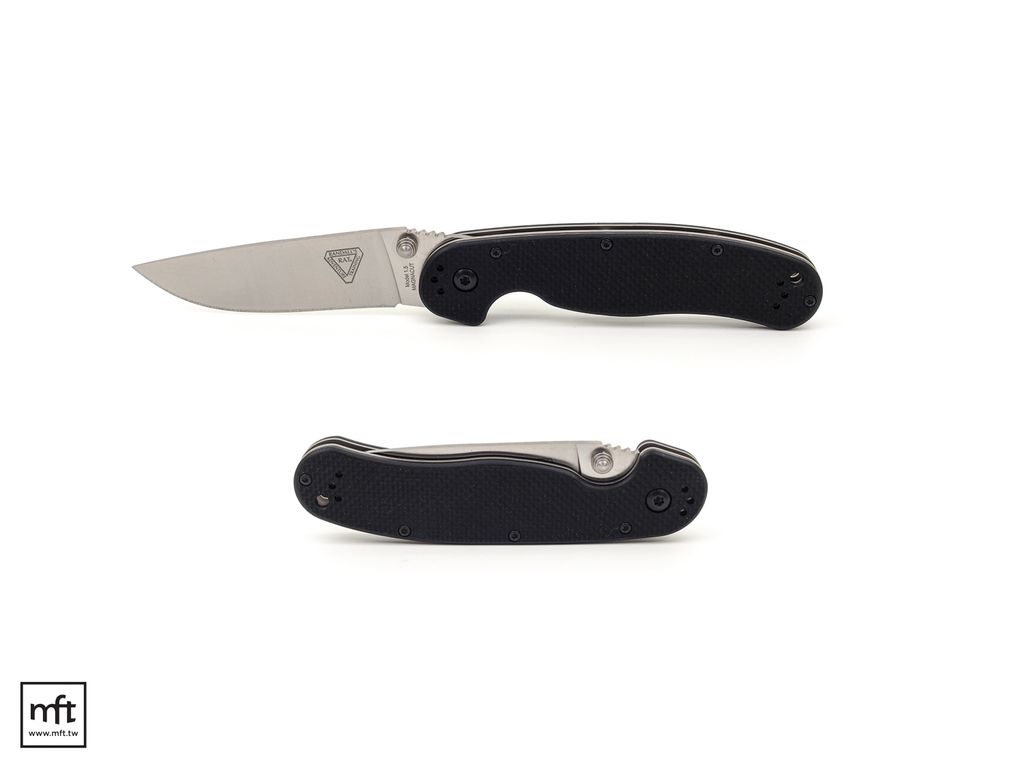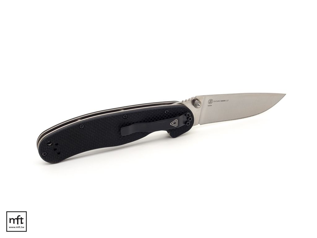 知名的Ontario RAT系列折刀,雙面拇指開啟鈕,刀刃非常銳利,握柄符合手部曲線,握感佳,台灣代工製造,品質穩定。不論是當做工作用刀還是EDC攜帶都合適,推出以來深受刀友肯定,一直是Ontario公司的常銷刀款,幾乎也可以說是折刀入門的標配。 Ontario RAT系列原本是和Randall's Adventure and Training合作推出,後來的版本都已經改掛Ontario自己的Logo。 目前刀刃上的Logo為三角形,是Ontario公司在2024年公司易手重整後所作的更動。