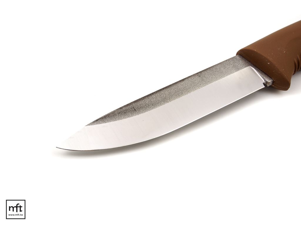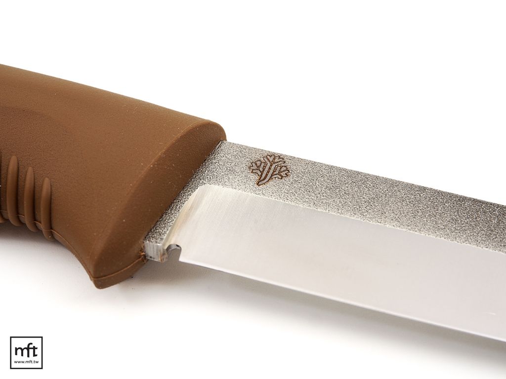 本款Sissipuukko M07採用N690不鏽鋼鋼鋼材,刃長11.9公分,刀刃厚度4.25mm,Drop Point刃型,Saber Grind刃角,刀刃為無塗裝的版本,刀刃上半部保留熱處理後的黑色痕跡。