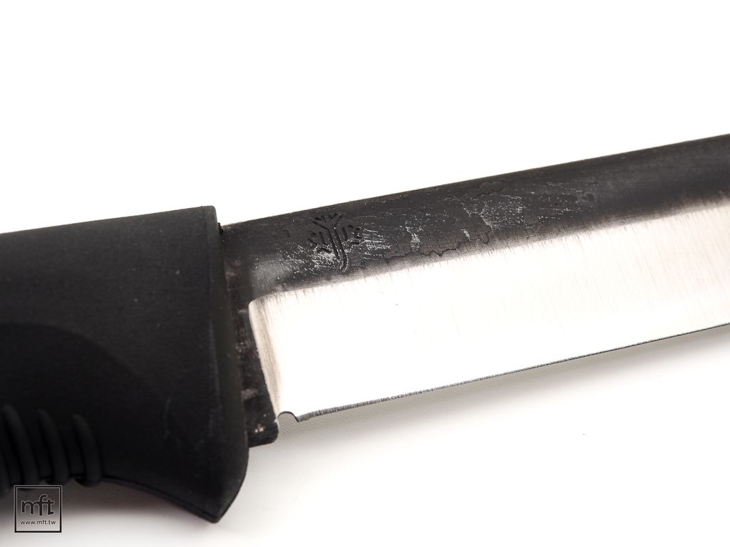 本款Sissipuukko M95採用80CrV2碳鋼鋼材,刃長15公分,刀刃厚度4.25mm,Drop Point刃型,Saber Grind刃角,刀刃為無塗裝的版本,刀刃上半部保留熱處理後的黑色痕跡。