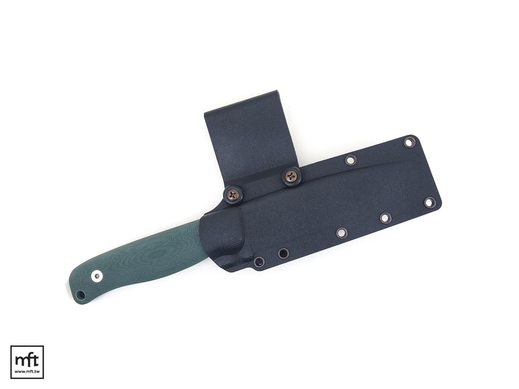 附Kydex刀鞘與背夾,背夾可以自行調整角度和刀鞘結合。
