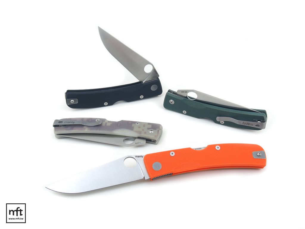 本款為PEAK 1.2379(D2) 鋼材版本,Manly採用的1.2379鋼材是來自德國,大致等同於D2鋼,是Manly生產線中第二平價的一種,目前有兩種顏色的G10握柄款式可供選擇。