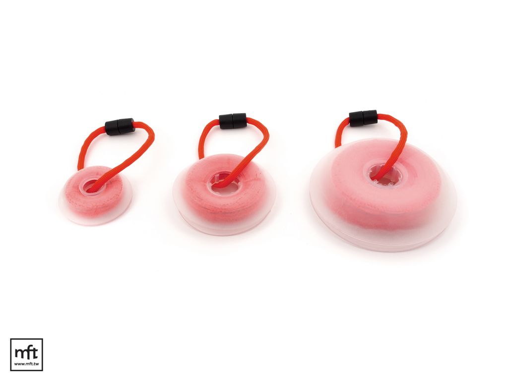 線軸的部份本身像是半顆溜溜球,材質是霧面半透明的軟塑膠。使用時,將線頭找出後,可以直接抽線出來使用,要收線時將上半部翻起來,就可以把線繞回去,上半部蓋上後,線收在裡面,不會纏繞到其他物品上。