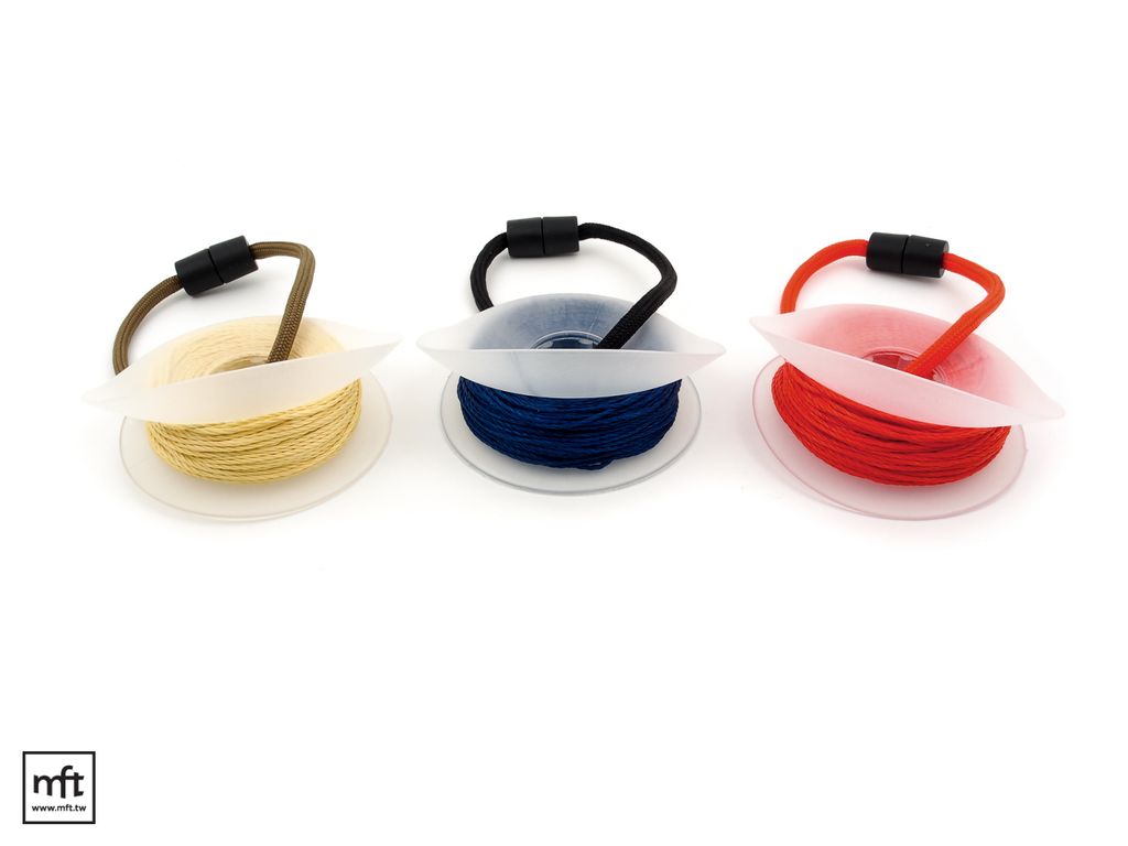 Kevlar Cord高強度纖維線是以Kevlar纖維為核心材料的三股絞繞高強度線材,可承受約190磅的拉力,最大的好處是線本身相當的細,收納起來的體積很小,卻又可以承受很高的強度。